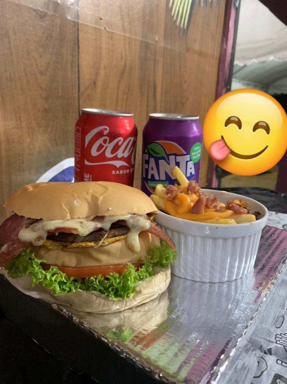PÃO, CARNE, QUEIJO, BACON, ALFACE, TOMATE, BATATA PALHA E MAIONESE